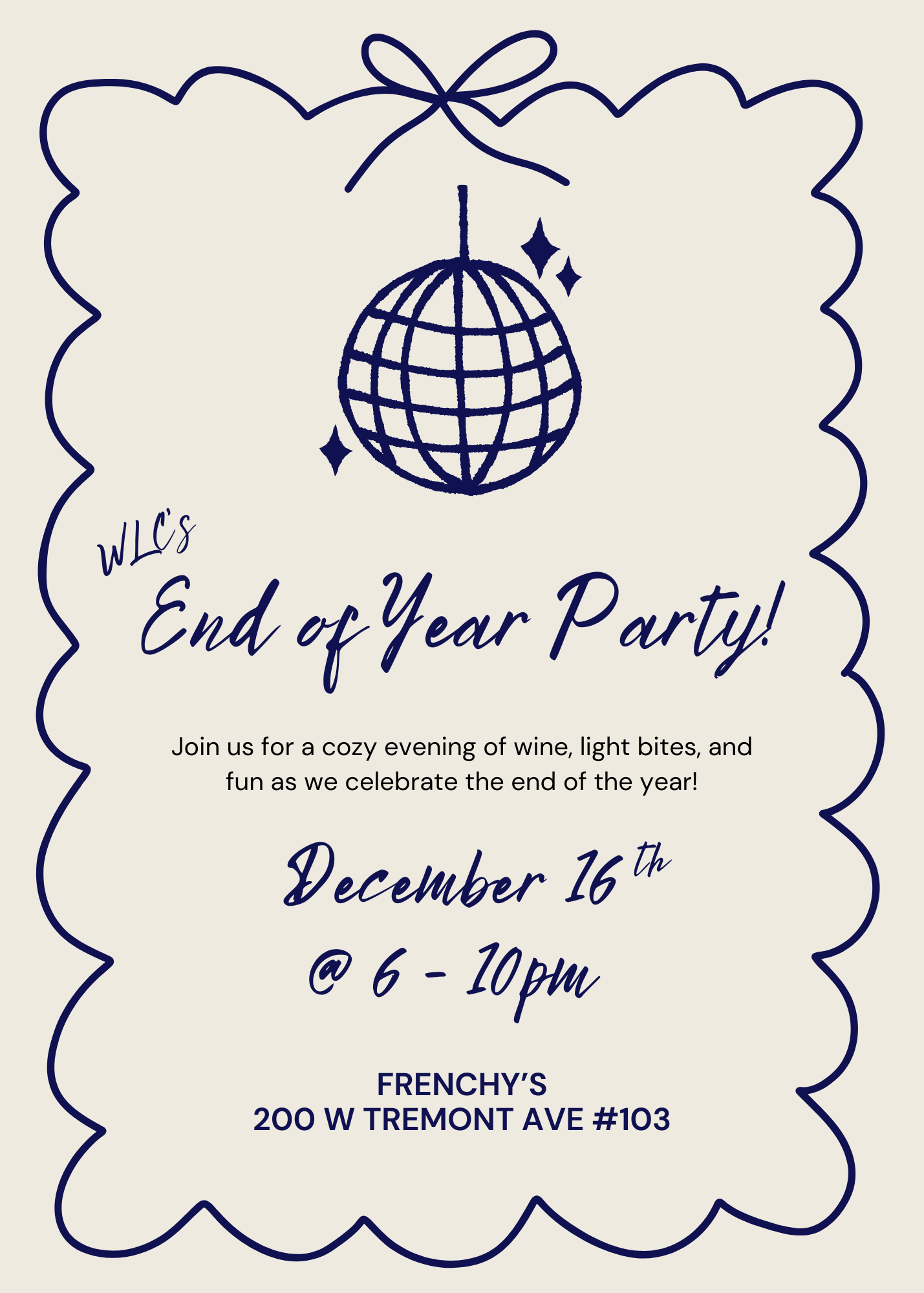 December 16 @ 6:00 pm - 10:00 pm End of Year Party Frenchy's Sip and Shop 200 W Tremont Ave, Suite 103, Charlotte, NC, United States